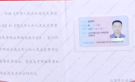 在由軍隊發(fā)放居民身份證工作領(lǐng)導小組和北京市公安局、北京衛(wèi)戍區(qū)聯(lián)合舉行的首發(fā)式上,駐京部隊的460多名官兵拿到了《中華人民共和國居民身份證》。
