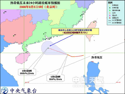 中新網8月5日電 據(jù)中國天氣網消息,中央氣象臺今天早晨六時發(fā)布熱帶低壓消息: