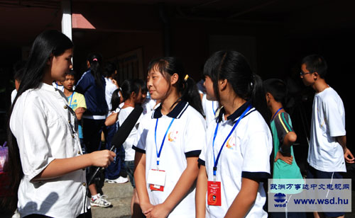 《歐洲萬事達(dá)報》十三歲的特約小記者陳藝捷采訪了地震災(zāi)區(qū)的學(xué)生劉一姍與趙宇,他們告訴記者,我們來到這里很快樂,剛開始不是太習(xí)慣,因?yàn)槲覀兯拇◥鄢岳苯罚艘岳睘橹,這里的匈餐很少吃到辣的菜,在飲食方面開始有些不適應(yīng),現(xiàn)在好多了慢慢適應(yīng)了。(文/宋聚芳 攝影/陳雷)