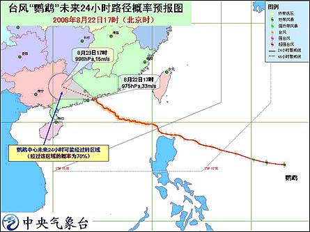 中新網(wǎng)8月22日電 中央氣象臺22日18時發(fā)布臺風(fēng)橙色警報:今年第12號臺風(fēng)“鸚鵡”(Nuri)的中心已于今天下午4時55分在香港西貢沿海登陸,登陸時中心附近最大風(fēng)力有12級(33米/秒)。下午5時臺風(fēng)中心位于香港西貢境內(nèi),就是北緯22.3度,東經(jīng)114.3度,中心附近最大風(fēng)力仍有12級(33米/秒)。