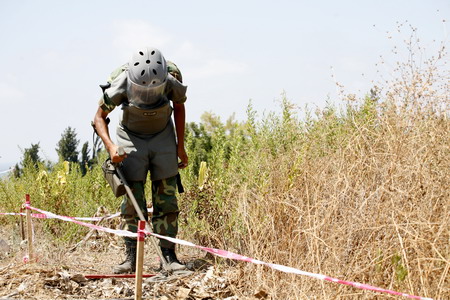 中國赴黎維和工兵營官兵告訴記者,該雷區(qū)位于黎以邊界的藍(lán)線雷場,自上世紀(jì)70年代以來,黎以雙方把近50萬顆各型地雷埋藏于此。由于雷場植被茂密、荊棘叢生,再加上長時(shí)間的雨水沖刷,很多地雷都發(fā)生了移位,官兵手中的雷場信息圖,早已成了廢紙,這給掃雷工作帶來了很大的危險(xiǎn)和困難。