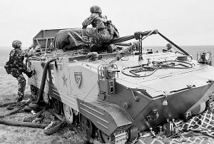 與裝備同時(shí)空投的傘兵著陸后迅速解除戰(zhàn)車(chē)傘降裝具。李靖攝
