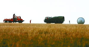 這片草場(chǎng)大體位于“神五”、“神六”著陸的位置之間,距二者均約10公里。記者在現(xiàn)場(chǎng)看到,模型傾斜倒在草場(chǎng),身穿“中國航天搜救”制服的人員證實(shí),這是“神七”主著陸場(chǎng)最后一次大型綜合演練。