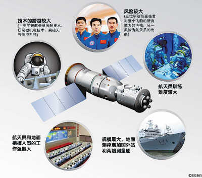 “我們設(shè)想在陽光照射的情況下讓神七航天員出艙,以保障安全,同時下傳圖像也更清晰,還希望飛船返回時盡可能在白天!敝袊d人航天工程副總指揮張建啟解釋說。此外,秋分前后對通信衛(wèi)星有不利因素。綜合各種因素,最終確定在9月25日晚上9時10分發(fā)射。