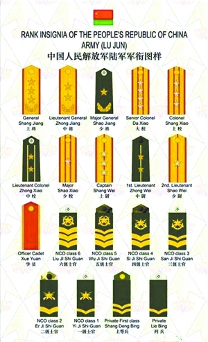 圖:中國(guó)人民解放軍陸軍現(xiàn)行軍銜標(biāo)志圖樣。