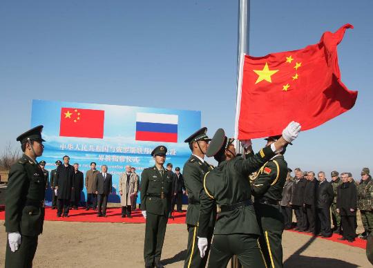 10月14日,中俄界樁揭幕儀式上升起中華人民共和國國旗 資料圖片
