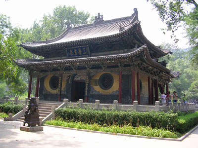 在中軸線末端,是宏偉壯麗的圣母殿。圣母殿背靠懸甕山,前臨魚沼,晉水的其他二泉——“難老”和“善利”分列左右。此殿創(chuàng)建于北宋天圣年間(公元1023——1032年),崇寧元年(公元1102年)重修,是現(xiàn)在晉祠內(nèi)最為古老的建筑。殿高約十九米,重檐歇山頂,面寬七間,進(jìn)深六間,平面布置幾乎成方形。殿身四周圍廊,前廊進(jìn)深兩間,廊下寬敞。在我國古代建筑中,殿周圍廊,此為現(xiàn)存最早的一個(gè)實(shí)例。殿周柱子略向內(nèi)傾,四根角柱顯著升高,使殿前檐曲線弧度很大。下翹的殿角與飛梁下折的兩翼相互映襯,一起一伏,一張一弛,更顯示出飛梁的巧妙和大殿的開闊。殿、橋、泉亭和魚沼,相互陪村,渾然一體。圣母殿采用“減柱法”營造,殿內(nèi)外共減十六根柱子,以廊柱和檐柱承托殿頂屋架,因此,殿前廊和殿內(nèi)十分的寬敞。“減柱法”的熟練使用。說明宋代在建筑上已進(jìn)一步掌握了力學(xué)原理;斗拱和柱高的比例適當(dāng),避免了隋唐建筑中用料的浪費(fèi),在建筑式樣上也更富于藝術(shù)性。我國的木結(jié)構(gòu)建筑,經(jīng)歷了一個(gè)由隋唐的雄壯堅(jiān)實(shí)到明清的華麗輕巧的發(fā)展地程,而宋代建筑正是這個(gè)過程中的重要環(huán)節(jié)。圣母殿是宋代建筑的代表作,對(duì)于研究我國宋代建筑和我國建筑發(fā)展史都很有價(jià)值。殿內(nèi)無柱,不但增加了高大神龕中圣母的威嚴(yán),而且為設(shè)置塑像提供了很好的條件。殿內(nèi)共四十三尊泥塑彩繪人像,除龕內(nèi)二小像系后補(bǔ)外,其余多北宋代原塑。主像圣母,即唐叔虞和周成王的母親,周武王的妻子,姜子牙的女兒——邑姜,其塑像設(shè)在大殿正中的神龕內(nèi)。其余四十二尊侍從像對(duì)稱地分列于龕外兩側(cè)。其中宦官像五尊,著男服的女官像四尊,侍女像共三十三尊。圣母邑姜,曲膝盤坐在飾鳳頭的木靠椅上,鳳冠蟒袍,霞帔珠瓔,面目端莊,顯示了統(tǒng)治者的尊貴和奢華。四十二個(gè)侍從像,手中各有所奉,為帝后服種種勞役,例如侍奉文印翰墨,灑掃梳妝,奉飲食,侍起居以至奏樂歌舞等等。這些塑像造型生動(dòng),姿態(tài)自然,尤其是侍女像更是精品。宋代的藝人,滿懷同情,塑造了一群終生被幽禁深宮,失去了自由,埋葬了青春的女性。這些侍女像的肢體身材比較造度,服飾美觀大方,衣紋明快流暢。她們的年齡或任或少,身段或豐滿或苗條,面龐或圓潤或清秀,神態(tài)或幽怨或天真,一個(gè)個(gè)性格鮮明,表情自然,加之高度與真人相仿,更顯得栩栩如生。這組塑像突破了神廟建筑中以塑造神佛為主的老套,真實(shí)地表現(xiàn)了被禁錮深宮受盡役使的侍從們的生活精神面貌,從而反映了封建社會(huì)中的一個(gè)側(cè)面。在技巧上,顯然相當(dāng)準(zhǔn)確地掌握了人體的比例和解剖關(guān)系,手法純熟,有高度的藝術(shù)表現(xiàn)力。它們是我國古代雕塑藝術(shù)中的珍品,在美術(shù)史上占有重要的位位。人們談到晉祠,往往總要談到這些精彩的宋塑。