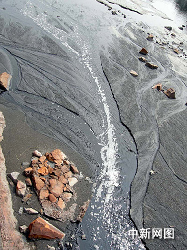 岸邊的灘涂已經完全變成了黑色