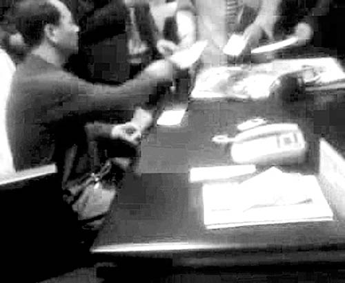 “山西直播”拍攝的視頻內(nèi)容顯示,礦方一手檢驗(yàn)記者證一手發(fā)錢!耙曨l顯示,錢是憑條發(fā)放的,找到這些條子,不難查清誰領(lǐng)了封口費(fèi)!贝黩斳娬f。
