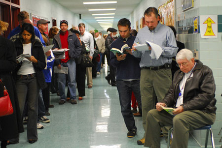 等到孩子們真正長(zhǎng)大可以投票的時(shí)候,他們?cè)跓崆楦邼q的同時(shí)又不乏理性。在呂芳的想像中,投票站應(yīng)該是兩方對(duì)壘,支持者搖旗吶喊才對(duì)。結(jié)果卻完全出乎他的預(yù)料。大選當(dāng)天,呂芳所在小組參觀(guān)的第一個(gè)投票點(diǎn)在弗吉尼亞Falls Church縣的一個(gè)社區(qū)活動(dòng)中心。他們到那里時(shí)剛過(guò)6點(diǎn),投票點(diǎn)外已經(jīng)排起了長(zhǎng)龍,蜿蜒足有一二百米。人群中,有人帶著蹣跚學(xué)步的孩子,有人坐著輪椅,有人自己帶著椅子……“但是,整個(gè)人群靜悄悄的,沒(méi)有一點(diǎn)激動(dòng)人心的表現(xiàn)。”