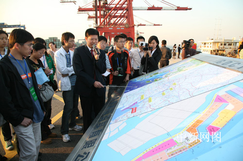 11月11日,廣州港南沙港區(qū)負責人向網(wǎng)絡(luò)媒體記者介紹南沙港區(qū)情況