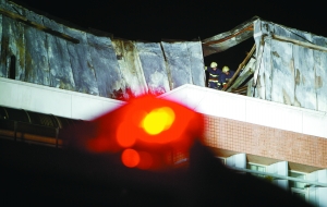 昨晚,消防員在處理火災(zāi)現(xiàn)場。