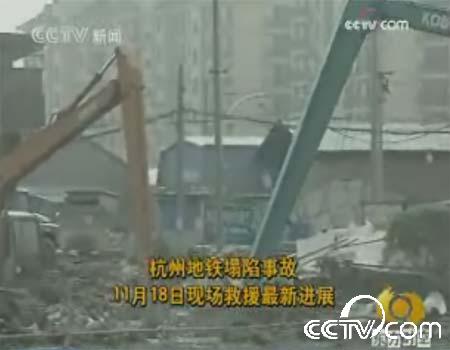 記者王克生:杭州地鐵工地搶險施救工作還在緊張進行,到目前救援人員發(fā)現(xiàn)的還是那七名遇難人員,初步核實還是有14個人下落不明,根據(jù)目前掌握的情況和現(xiàn)場的情況分析,因為塌陷的地方已經(jīng)完全被掩埋了,另外里面還有水,所以這14個人生還的希望已經(jīng)不是特別大了。經(jīng)過昨天晚上和今天上午連夜不斷的工作,原先倒塌坑內橫七豎八的鋼管已經(jīng)清除了,根據(jù)現(xiàn)場救援專家的意見,救援的重點是盡快清理塌陷厚約大約10米左右的瘀泥等雜物,防止可能出現(xiàn)對被困人員身體的傷害,救援工作目前主要以人工開挖的方式為主,可能的情況下再動用一些大型的施工設備,為了加快進度,救援人員用水沖刷堅固,然后把泥漿泵稀釋地面,估計稍后會發(fā)現(xiàn)遇難人員。