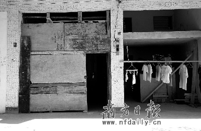 駱效計(jì)居住的房子,門(mén)和墻是自己用木板修的。