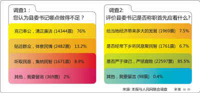 記者:來(lái)這里之前,我們和人民網(wǎng)做過(guò)一個(gè)調(diào)查,有76%的網(wǎng)友認(rèn)為,現(xiàn)在的縣委書(shū)記在“克己奉公,清正廉潔”這方面做得不足。請(qǐng)各位談?wù)劵鶎印耙话咽帧钡谋O(jiān)督現(xiàn)狀?