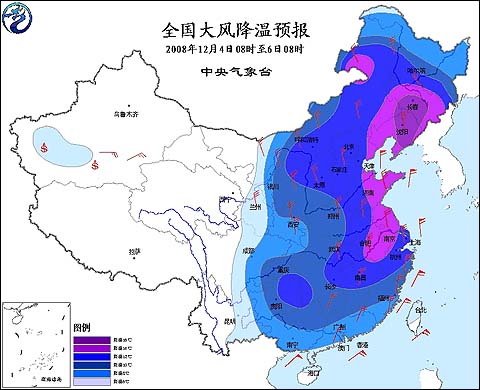 2008年12月4日08時(shí)全國大風(fēng)降溫預(yù)報(bào)圖