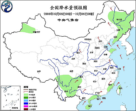 2008年12月5日8時—12月6日8時全國降水量預(yù)報圖