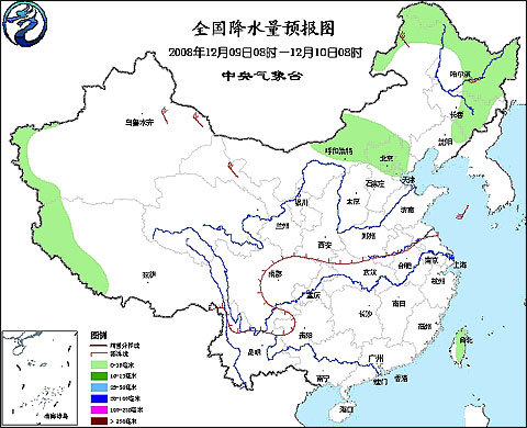2008年12月9日8時(shí)—12月10日8時(shí)全國降水量預(yù)報(bào)圖