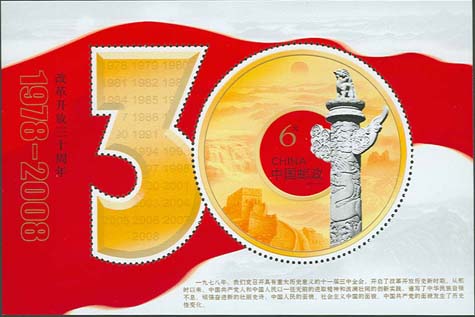 中新網(wǎng)12月16日電 據(jù)國家郵政局網(wǎng)站消息,國家郵政局定于2008年12月18日發(fā)行《改革開放三十周年》紀念郵票1套1枚,小型張1枚。