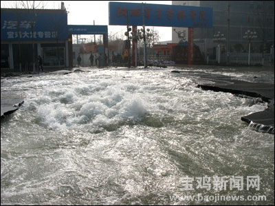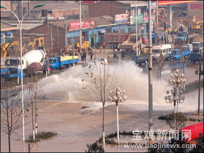 陜西寶雞輸水管道再次爆裂部分城區(qū)停水(組圖)