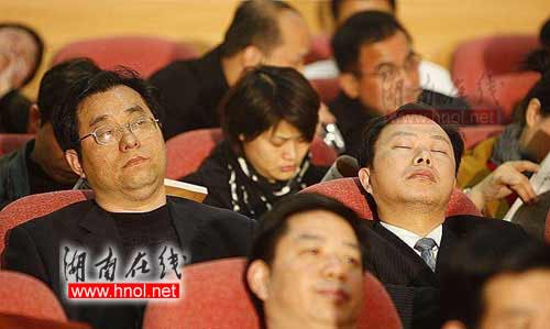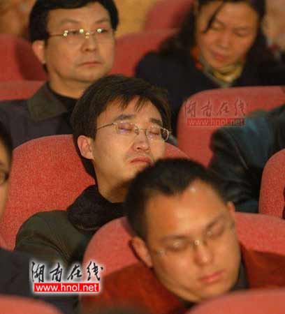 部分公務(wù)員會(huì)上睡覺(jué)被拍。