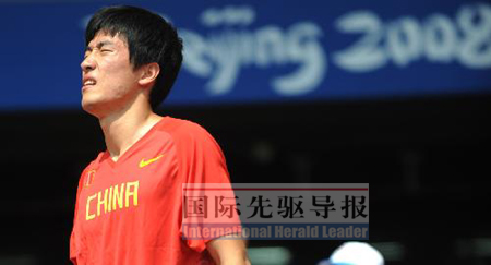 蹙眉難展,劉翔的失落亦是所有中國(guó)人的失落。 李尕/攝