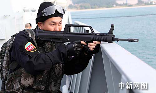 中新網“?凇迸12月28日電(記者 孫自法)特戰(zhàn)隊員出征前在“?凇碧枌楎屩鹋炆线M行輕武器演練。