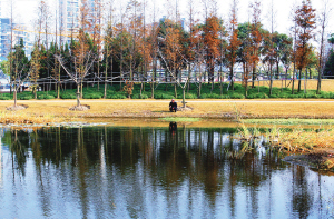 三林春塘河原本排水不暢、水體黑臭,經整治后,河岸綠意盎然,水質大大改善。而同汾涇也按景觀工程的要求進行了整治,修建了觀賞平臺、釣魚平臺、木橋等。(紀海鷹)