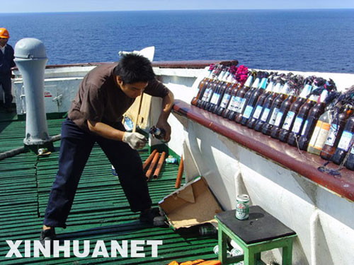 新華軍事特派記者朱鴻亮在"武漢"號(hào)驅(qū)逐艦上發(fā)回最新的連線報(bào)道。