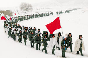 王志校:我團這次冬季適應(yīng)性訓(xùn)練有意識地選擇在2008年的最后一天。昨天晚上,部隊提前舉行了迎新年活動,之后立即啟動應(yīng)急拉動預(yù)案,在短短幾小時內(nèi)做好了整建制出動的一切準(zhǔn)備。明天就是新年第一天,按照總部部署安排,全軍將依照新大綱正式組訓(xùn),我們這次訓(xùn)練,既是對部隊?wèi)?yīng)急反應(yīng)能力的一次檢驗,也是一次按綱施訓(xùn)的“熱身”。