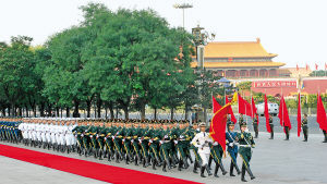 中國人民解放軍陸海空三軍儀仗隊(duì)主要擔(dān)負(fù)迎送外國元首、政府首腦、軍隊(duì)高級將領(lǐng)及紀(jì)念、慶典等重大國事活動(dòng)的儀仗司禮任務(wù)。禮儀是一個(gè)國家文化的精華,軍人執(zhí)行的國禮、軍禮更是一種精粹。三軍儀仗隊(duì)建隊(duì)以來,先后圓滿完成了外國首腦訪問,香港、澳門回歸政權(quán)交接儀式升國旗,奧運(yùn)會、殘奧會開閉幕式國旗升降、頒獎(jiǎng)等3000多次儀仗司禮任務(wù),被中央軍委授予“軍旅標(biāo)兵”榮譽(yù)稱號,贏得了國內(nèi)外公眾和輿論的廣泛贊譽(yù)。朱民、劉桂利、張力攝影報(bào)道