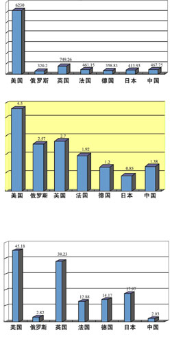 中國國防費總額、軍人人均數(shù)額,仍低于世界一些主要大國的水平。2007年,中國年度國防費相當于美國的7.51%、英國的62.43%。軍人人均數(shù)額是美國的4.49%,日本的11.3%,英國的5.31%,法國的15.76%,德國的14.33%。從國家國防負擔的相對比例看,中國國防費僅占國內(nèi)生產(chǎn)總值的1.38%,而美國占4.5%,英國占2.7%,法國占1.92%。