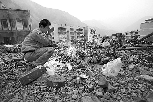 昨晚,北川縣委宣傳部部長(zhǎng)韓貴鈞說(shuō),之前縣里在任家坪半山腰上修建了一條水泥路,并在半山腰搭建三座觀景臺(tái),方便人祭拜。臘月二十三到年三十,是當(dāng)?shù)貍鹘y(tǒng)的祭拜親人的日子,為了滿足災(zāi)民祭拜要求,當(dāng)?shù)卣疀Q定,北川縣城向居民開(kāi)放。