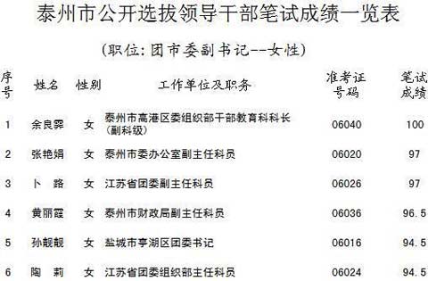 平心而論,這位靚靚同學的工作應該是不錯的。在某網(wǎng)站論壇上,網(wǎng)友“木有下文”貼出了“泰州市公開選拔領導干部筆試成績一覽表”,孫靚靚以94.5分居第五名,但在其它考核中她迎頭趕上,最終奪得泰州市團市委副書記一職。該網(wǎng)友還提供了一份網(wǎng)上資料,“孫靚靚是作為江蘇省委組織部2006屆選調生被選為預備干部的。按國家的有關規(guī)定,各單位的選調生一般都作為黨政領導干部后備人選和縣級以上黨政機關高素質的工作人員人選,而在上調之前基本上都會放在基層煅煉!