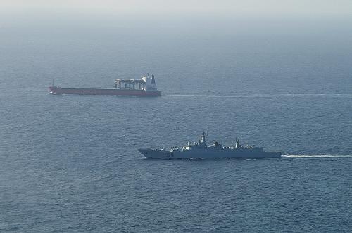 22時(shí)50分,“天河”號商船在“武漢”艦的護(hù)航下,漸漸駛出危險(xiǎn)海區(qū)。