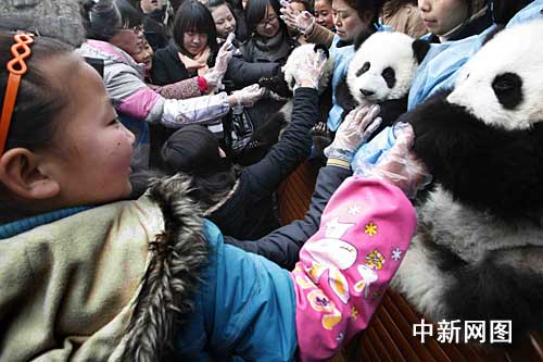 中新社成都一月二十七日電 (記者 鄒輝)中國農(nóng)歷大年初二,來自都江堰的十七名因汶川大地震新增的“三孤”人員,受邀來到成都大熊貓繁育研究基地:參觀大熊貓產(chǎn)房、品嘗大熊貓專用“窩頭”、同大熊貓親密接觸合影留念……度過了一個獨(dú)具意義的春節(jié)。