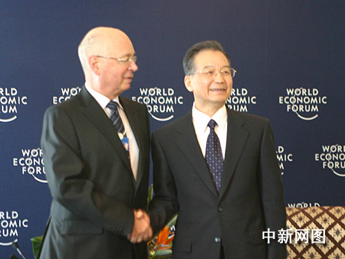 施瓦布在會見中對中國改革開放30年來取得的巨大成就表示祝賀,并感謝溫家寶總理剛過春節(jié)就來到達(dá)沃斯。
