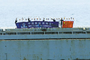下午2點30分許,兩艘脫離危險的中國商船與“武漢”艦在亞丁灣某海域會合。此后,他們將在“武漢”艦的伴隨護航下,安全駛向下一個目的地港口。經(jīng)歷了凌晨的驚心動魄,在茫茫無垠的大海上見到自己祖國的軍艦,兩艘商船上的船員再也掩飾不住興奮和喜悅。“蓮花!碧柎瑔T放起了鞭炮,“樂民”號船員高舉鮮紅的五星紅旗,并打出了“中遠航運歡迎您!”表達他們對祖國海軍的真摯謝意。(田源 錢曉虎)