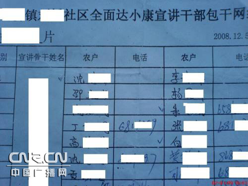 據(jù)村民說,為了順利通過小康驗(yàn)收,鎮(zhèn)里、村里開了三四次會(huì),干部們層層“承包”,挨家挨戶到每個(gè)有電話的村民家進(jìn)行動(dòng)員,保證調(diào)查時(shí)不說錯(cuò)話。對那些按照標(biāo)準(zhǔn)答案說好話的村民,進(jìn)行少則百元多則上千元的獎(jiǎng)勵(lì)。當(dāng)?shù)刂行W(xué)還專門給學(xué)生放了一天假,老師要求學(xué)生把標(biāo)準(zhǔn)答案背熟記牢,貼在電話機(jī)旁邊,協(xié)助家長應(yīng)對小康驗(yàn)收電話。