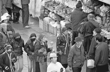 陽光下的拉薩顯得溫暖而平和,在熱鬧的八角街,朝圣者的腳步依舊匆匆,大大小小的商鋪依舊熱鬧。74歲的藏族老人益西洛追住在夏薩蘇社區(qū),他喜歡每天到八角街上走一走,感受這里的繁華。經(jīng)歷過新舊兩個(gè)西藏的益西洛追,在這條街上最能感受到時(shí)代變遷的真正含義。