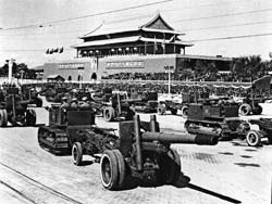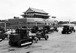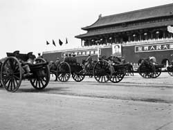 曾參與新中國(guó)多次國(guó)慶閱兵的北京軍區(qū)原炮兵司令部處長(zhǎng)張軍告訴記者,開國(guó)大典受閱炮兵部隊(duì)裝備,全是從日本侵略軍和國(guó)民黨軍隊(duì)手里繳獲的戰(zhàn)利品,其中參加閱兵的90野炮和38野炮,不僅身管短,兩個(gè)輪子有的還是木輪子包鐵皮的。盡管當(dāng)時(shí)我軍武器裝備還很落后,但場(chǎng)面恢宏、壯觀,大氣磅礴,全體受閱將士以昂揚(yáng)精神狀態(tài)、威武雄壯陣容出現(xiàn)在國(guó)人面前,并向世界發(fā)出了宣言:中國(guó)人民解放軍有信心、有能力保衛(wèi)新生的人民政權(quán)!正因?yàn)槿绱,開國(guó)大閱兵具有極為重要的歷史意義。
