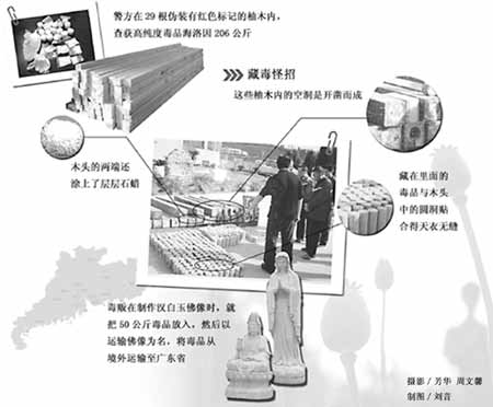 2003年7月,馬國祥以每公斤13萬元的價格從“阿強”手中購買藏在漢白玉佛像里的海洛因50公斤。據(jù)了解,“阿強”等人在制作漢白玉佛像時,就把毒品放入,然后以運輸佛像為名,將毒品從境外運輸至廣東省。