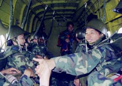 這支女子跳傘隊自1991年7月組建至今,隊員們跳過了裝備到空降兵部隊的各種傘型、各種機型,經(jīng)歷了南疆海島、水網(wǎng)稻田、戈壁沙漠、鄂北原始森林等各種復(fù)雜地形的空降演習(xí)和試訓(xùn)任務(wù),成為空降兵部隊能跳任何機型、傘型,敢跳高、新、險科目的“專業(yè)”傘兵。她們過硬的軍事技能,無不來自于她們一次次搏擊風(fēng)浪、一次次趟過空降領(lǐng)域“沼澤地”的不平凡的經(jīng)歷。