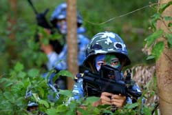何新瑛指導(dǎo)員向我們介紹,面對未來戰(zhàn)場的惡劣環(huán)境,面對兩棲偵察女兵隊所擔(dān)負(fù)的特殊任務(wù),其訓(xùn)練的難度強(qiáng)度是一般人難以想像的。作為一名女子陸戰(zhàn)隊員,每天除完成正常的訓(xùn)練課目外,在體能上必須堅持做到“五個一百”,即100個俯臥撐,100個仰臥起坐,100個蹲下起立,100個曲臂伸,100次往返跑;同時還要綁著10多斤的沙包練5公里越野。這些最基本的體能訓(xùn)練要求,使每個姑娘都面臨著生理和心理的考驗。盡管每年新入伍的戰(zhàn)士都有累得掉眼淚,但在部隊的教育以及戰(zhàn)友的關(guān)心幫助下,姑娘們都很堅強(qiáng),憑著忠誠于黨、獻(xiàn)身使命的崇高追求和熾熱情懷,一無往顧地沖在軍事斗爭準(zhǔn)備的第一線。