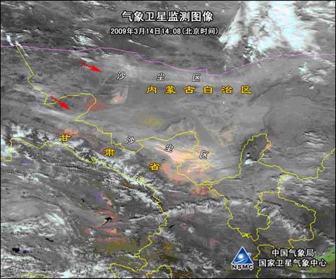14日白天,內(nèi)蒙古西部出現(xiàn)沙塵暴,甘肅民勤出現(xiàn)能見度僅300米的強(qiáng)沙塵暴。當(dāng)天內(nèi)蒙古、青海、甘肅、寧夏等地有6-7級(jí)風(fēng),局部地區(qū)達(dá)8級(jí)。今天當(dāng)?shù)氐娘L(fēng)力減弱了,但部分沙塵會(huì)順著強(qiáng)勁的西北風(fēng)向東推移。北京今天正處于西北氣流控制,因而受到“牽連”。
