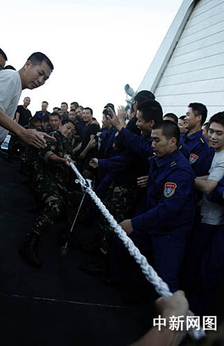 中新網(wǎng)“?凇迸3月19日電 (記者 孫自法) 3月中旬,為豐富廣大護(hù)航官兵業(yè)余生活,中國(guó)海軍艦艇編隊(duì)“海口”號(hào)導(dǎo)彈驅(qū)逐艦在護(hù)航之余組織舉辦第二屆甲板運(yùn)動(dòng)會(huì),艦上官兵積極參與,各類比賽、訓(xùn)練項(xiàng)目精彩紛呈。編隊(duì)三亞起航遠(yuǎn)赴亞丁灣、索馬里海域執(zhí)行護(hù)航任務(wù)近三個(gè)月來(lái),廣大護(hù)航官兵身心狀態(tài)良好、士氣昂揚(yáng)。