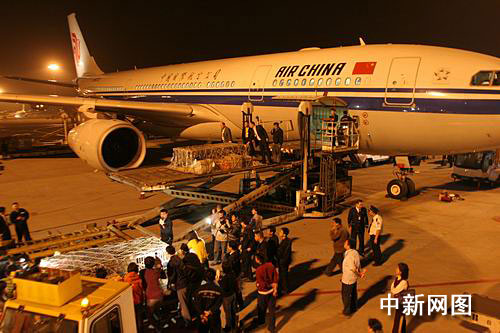中新社成都三月二十二日電(包力達 楊杰 金朝陽)二十二日晚二十時三十五分,經(jīng)過兩個半小時的飛行,運載著八只“奧運熊貓”的國航CA四一0四航班平穩(wěn)降落在成都雙流機場。隨后,工作人員將它們裝上專用貨車,連夜向中國保護大熊貓研究中心雅安碧峰峽基地駛?cè)。于兩個多小時后到達震后新家。