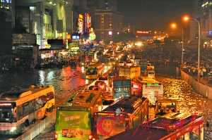 打車難、等車難、塞車成為暴雨天的“例牌”。昨日的環(huán)市路、天河北、火車站、崗頂、東風(fēng)路、黃埔大道、科韻路、中山大道、廣州大道等主干道均出現(xiàn)了堵車。曾小姐駕車從人民中路到崗頂足足用了三個(gè)小時(shí)。從湖南到廣州出差的張先生也遭遇打車難,“我從廣州東站出來等了兩個(gè)多小時(shí),幾百人在等出租車,愣是沒有一輛空車進(jìn)來!彼辜钡卣f。