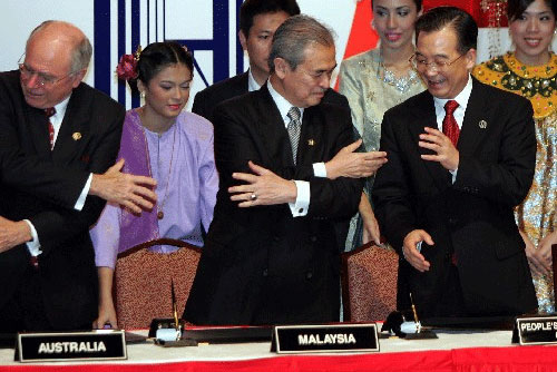 2005年12月14日,首屆東亞峰會(huì)在馬來西亞首都吉隆坡舉行,來自東盟十國、中國、日本、韓國、印度、澳大利亞和新西蘭的國家元首或政府首腦與會(huì)。會(huì)上,與會(huì)各國領(lǐng)導(dǎo)人簽署了《東亞峰會(huì)吉隆坡宣言》,討論通過了關(guān)于防控和應(yīng)對禽流感的宣言,并就加強(qiáng)合作、相互依存、共謀發(fā)展達(dá)成廣泛共識(shí)。溫家寶總理在首屆東亞峰會(huì)上發(fā)表了題為《堅(jiān)持開放包容 實(shí)現(xiàn)互利共贏》的講話。