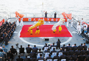 4月1日,《人民海軍》報推出“紀念人民海軍成立60周年特刊”。當天上午,“武漢”艦便將其打印出來,張貼在飯?zhí)、活動室,官兵們爭相閱讀。護航以來,每期的海軍報都在第一時間與官兵見面。